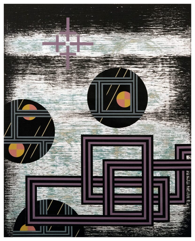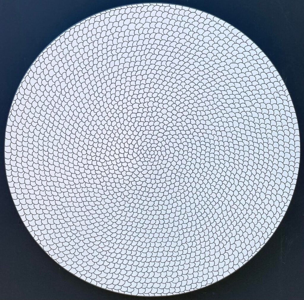 Janice Lessman-Moss maintains a weaving studio in her home in Kent, Ohio, USA where she is Emeritus Professor at Kent State University. She was awarded a United States Artists Fellowship in 2019, the Cleveland Arts Prize Lifetime Achievement Award, the Governor’s Award for the Arts in Ohio, an Arts Midwest/National Endowment for the Arts Fellowship in Crafts, and nine Individual Artist Fellowships from the Ohio Arts Council throughout her career. Her work been presented throughout the United States and internationally, including a recent solo exhibition at the Kent State University Museum.In her art, she embraces the unique vocabulary of digital design and its relation to the binary functioning of threads on the loom. Shiny metal wire is integrated into the woven compositions to enhance the richness of textural contrasts and engage the viewer in more active discovery. Traversing the space in front of the weavings reveals a play of light, reflection, and shadow within its low relief sculptural surface. She works with abstract systems in networks of interlocking shapes to create a dynamic topography expressive of her interest in Random Walk theory and the actual practice of walking; rhythmic movement all rooted in a matrix of circles and squares.janicelessman-moss.com