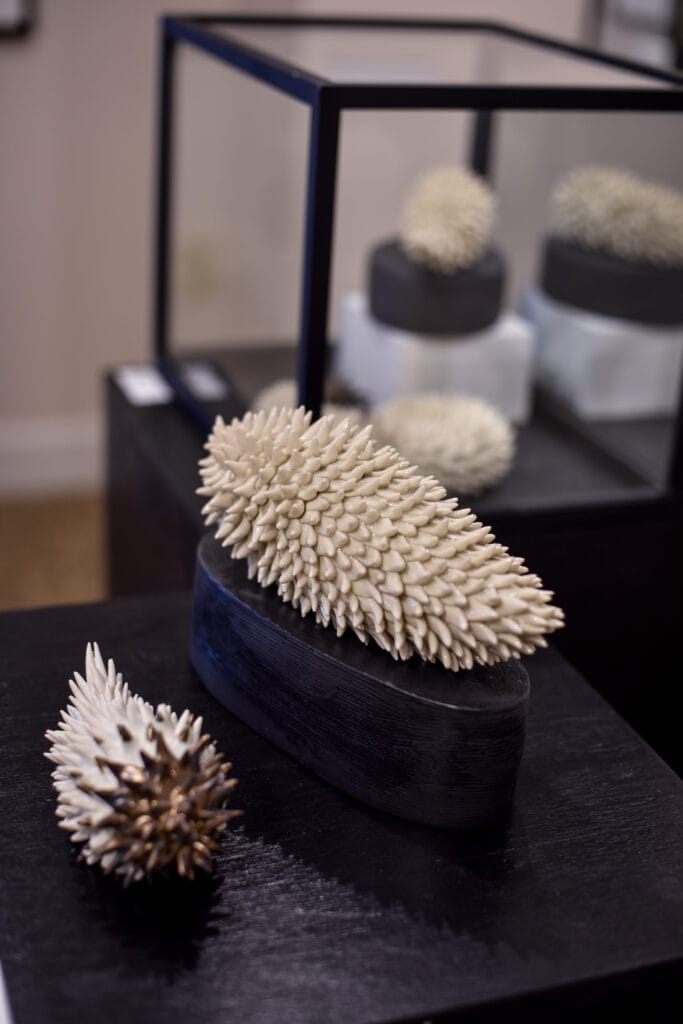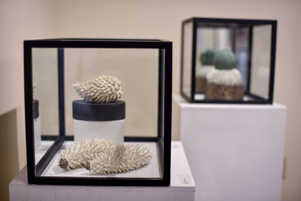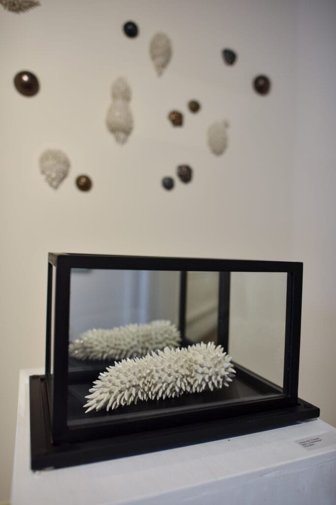 Beth Lindenberger is a studio artist who primarily works in clay. Her sculptural ceramic work is based on cells, microscopic organisms and natural objects, and her interest lies in the complex relationships between them, both visually and metaphorically. Her work has been exhibited locally and nationally. As adjunct faculty, she’s taught Ceramics, 3-D and 2-D Design at various colleges and universities, as well as community art institutions. She has also worked at galleries and curated various exhibitions.