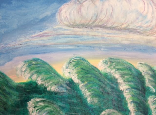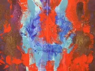 This piece shows my struggle with my anger. Along with depression, anger has been a big part of my life. The blues and purples represent the calm areas of my psyche. The scattered red represents the ever pervasive presence of anger. The small scattered areas of white represent periods of hope and calm.