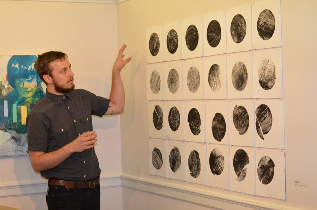 Nicholas Skowron was born in Youngstown, Ohio. He studied art and architecture at Kent State University from 2007 to 2011 and recently began his graduate studies in printmaking. His work uses the processes of printmaking to explore containment and visual boundaries with an emphasis on geometry and space. Contained Vibrations I is a twenty-four image series that explores what happens when an image’s boundary is violated, becoming two separated pieces from the same source.