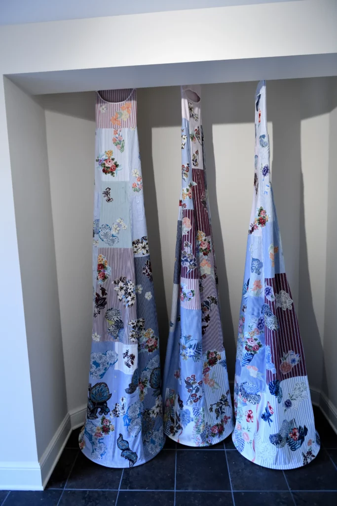 My sculptural work in textiles stems from the recognition that much about human nature and experience can be expressed by tapping into a universal understanding of clothing and its many contexts. For example, we share memories and associations with clothing as signifiers (status, employment, time-period) but also with clothing as a tactile experience (softness, stiffness, and comfort).