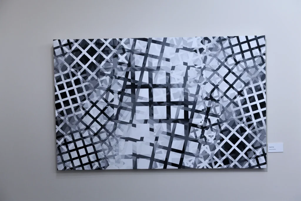 I have always been intrigued by artworks of the Op Art style, specifically the works of Julian Stanczak, Victor Vasarely, and more recently, Susie Rosmarin. My earliest paintings were investigations of those styles – attempts to recreate the retinal experience with results of vibrations, movements, blur, and after-images. My work focused on comparisons of various color progressions, supported by my use of rigid and methodical gridworks.