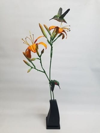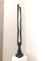 Terry Klausman is a local professional artist since 2010. Although he has only had a 14-year career he has accomplished a lot. Mr. Klausman’s work is featured in major collections, corporate, public, and private. He has participated in over 200 juried, group, and solo shows. The sculpture before you is from Terry’s weld steel sculpture series titled, “Gazelle”. This is the latest in the series. This piece is raw welded steel, no finish. This Gazelle series was inspired by his desire to turn a very masculine form into a graceful, feminine form, in a minimal way.