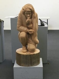 Educated at Ohio Wesleyan University (1972), he worked with sculptor professor Ebb Haycock – teacher, friend, mentor for 46 years. Life took a turn when a friend urged David to go to Haiti. For 6 years he worked and taught sculpture to kids and high-risk teens, started a business with local women, and worked to set up an art school. David is currently in the sixth year of a project carving 8 full-size human figures titled “The Journey”. Scenes depict hardships experienced to reach a place of physical and emotional safety. Completion expected in two years.